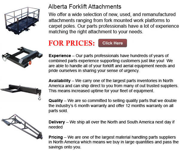 ![]() Forklift Attachments Alberta - The Province of Alberta is the 2nd westernmost Canadian province. The province of Alberta has an estimated population of around 3.7 million residents which makes it the most populous prairie province. On the first of September, the year 1905, Alberta and its neighbor province of Saskatchewan became officially established as provinces. | ||