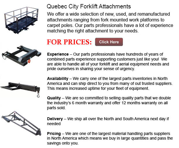 ![]() Forklift Attachments Quebec City - The city of Quebec is the capital of Quebec Province, a province in Canada. The population was 516,622 as of 2011. The metropolitan area had a population of approximately 765,706 that made it the 2nd most heavily populated city following the city of Montreal. Montreal is situated about 145 miles or 233 km to the southwest of Quebec City. | ||